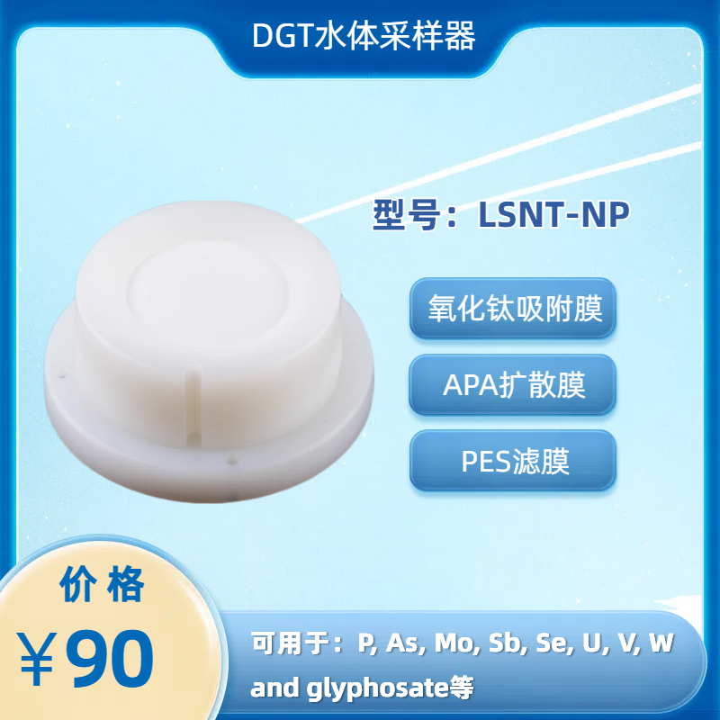测量磷以及氧化阴离子形式存在的金属,包括铝、砷、钼、锑、硒、铀、钒、钨(Panther et al., 2010, 2012, 2013, Hutchins et al., 2012)。也曾被用于测量草甘膦(Fauvelle et al., 2015)。适用于含 0.8 mm APA(聚丙烯酰胺)扩散凝胶、聚醚砜滤膜以及由氧化钛(Metsorb)构成的吸附膜的水体DGT装置。