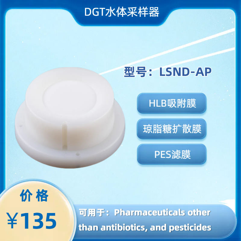 能够测量一系列极性化合物,包括一些药物(含精神类药物)、内分泌干扰化学物质、家居及个人护理产品以及有机磷阻燃剂。查看有机分析物带有相应参考文献的化合物咧表。适用于含 0.8 mm 琼脂糖扩散凝胶、聚四氟乙烯(PTFE)滤膜以及 HLB 构成吸附膜的水体DGT装置。